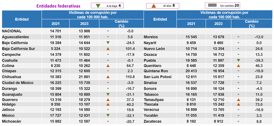 Dos estados morenistas (Baja California Sur y Tlaxcala) y un panista (Chihuahua) son los que padecen un mayor aumento en víctimas de la corrupción por cada 100 mil habitantes entre los años 2021 y 23, de acuerdo a la más reciente medición del INEGI.