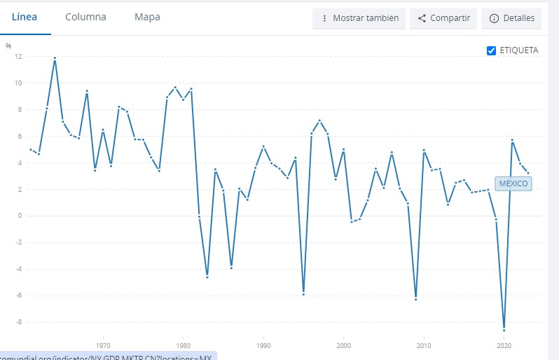 Tampoco se puede omitir el legado de una economía nacional cuyo PIB, según datos de la OCDE y el Banco Mundial, apenas crecerá un promedio anual de 0.65 % durante el sexenio, ya que en 2019 y 2020 (año de la pandemia) su producción se contrajo un total de 8.9 por ciento y del 2021 al 23 alcanzó un incremento total de 12.8%, que significa que la expansión acumulada del sexenio llegará a alrededor del 3.9 por ciento, totalmente insuficiente para 6 años de administración: En el segundo trimestre de 2024 y con cifras desestacionalizadas, el PIB aumentó 0.2 % a tasa trimestral, en términos reales