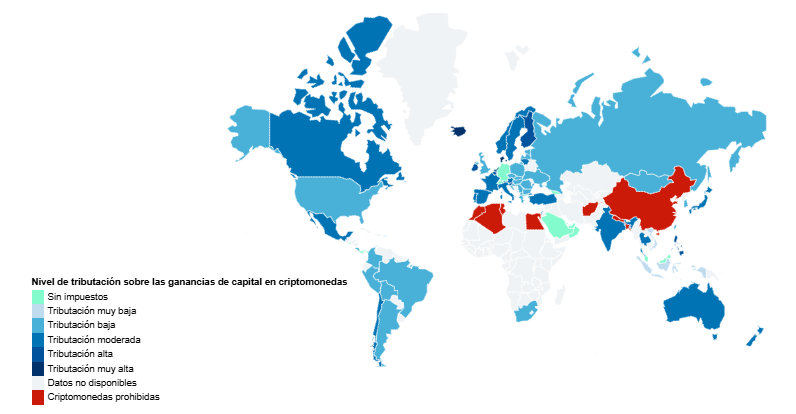 Los datos presentados en este mapa muestran los tipos impositivos aplicados el 1 de enero de 2025 a las plusvalías realizadas en el comercio de criptodivisas en todo el mundo para inversores particulares. Dado que las normativas y regulaciones nacionales pueden cambiar rápidamente, los datos presentados anteriormente están sujetos a cambios. No dude en escribirnos para notificarnos cualquier actualización que deba realizarse. Los países cuyos datos no están disponibles suelen ser aquellos que aún no han establecido un marco legislativo claro sobre la legalidad y la fiscalidad de los ingresos obtenidos en criptodivisas.