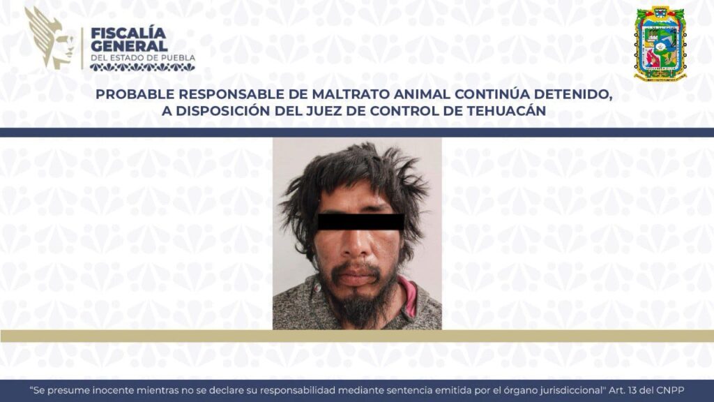 La Fiscalía General del Estado de Puebla confirma que dio cumplimiento a la orden de aprehensión en contra de Luis N., de 30 años de edad, por su probable responsabilidad en el delito de maltrato animal en agravio del lomito “Huesitos”, en Tehuacán, Puebla.