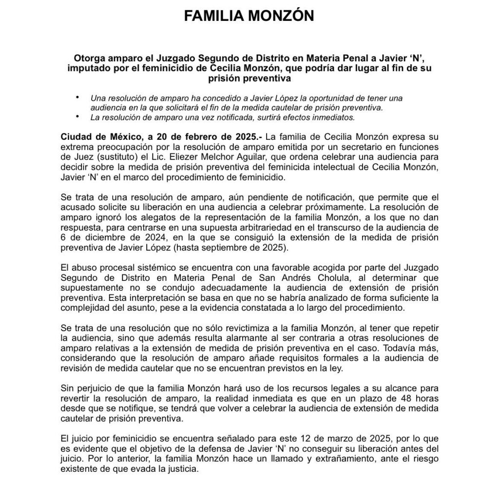 Señaló que la nueva resolución revictimiza a la familia Monzón al tener que repetir la audiencia.