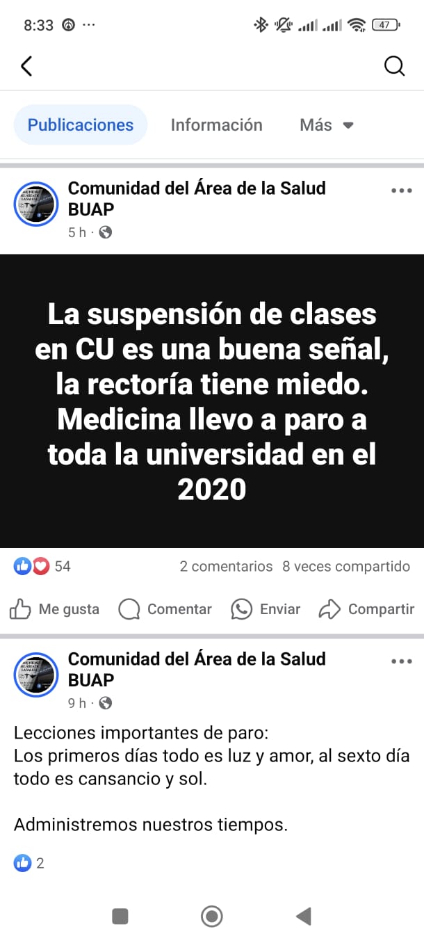 Y son muy evidentes, ya que cada vez que hay sesión del Consejo Universitario, los Buapleaks llegan a los teléfonos de sus contactos que han ido recabando. También son predecibles y esta vez no fue la excepción, puesto que ya habían anunciado lo que pasaría Medicina, comenzaron a soltar su veneno a través de incondicionales en dicha facultad, para confundir a los verdaderos estudiantes de la FMBUAP, que tienen una demandar real, la de más espacios para los programas de servicio social y del internado rotatorio.