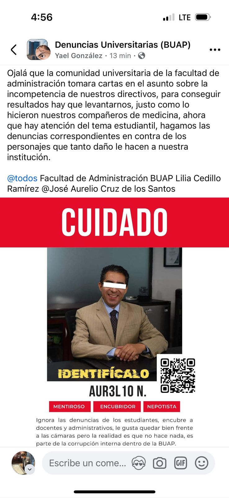 Así que los Buapleaks deberían renunciar, porque ahora quieren crear caos en las facultades de Administración y Psicología, pero la institución ya toma cartas en el asunto y, además, miles de universitarios y poblanos sabemos que la BUAP es importante para la gobernabilidad de TODO EL ESTADO y RECHAZAMOS cualquier intento de ataque o caos contra ella.