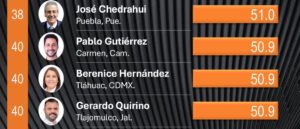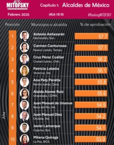 Según el ranking de la firma, los diez presidentes y presidentas municipales con mayor aprobación son: