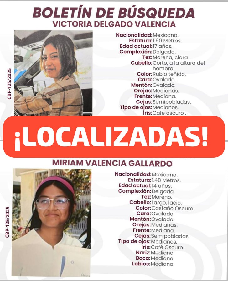 La Fiscalía General del Estado de Puebla en coordinación con los cuerpos de seguridad del Estado, al realizar actos de investigación localizó en buen estado de salud en la comunidad de Santa Isabel Cholula a las adolescentes Miriam N. y Victoria N., quienes en un inicio fueron reportadas como privadas de la libertad en la misma zona.