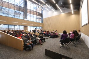 Como parte del programa, se realizó el conversatorio “Los derechos de las mujeres a 50 años de la primera conferencia mundial sobre la mujer de 1975 y a 30 años de la Declaración y Plataforma de Acción de Beijing de 1995”, así como la proyección de videos conmemorativos.