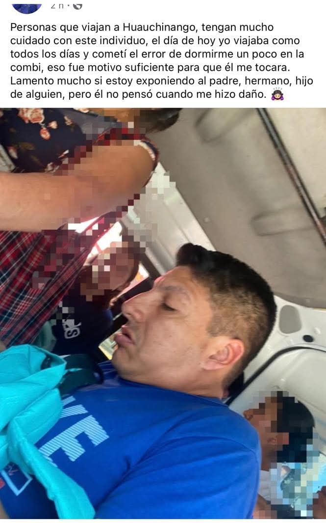El sujeto fue exhibido, debido a que presuntamente “tocó” el cuerpo de una joven mujer mientras viajaba hacia Huauchinango.