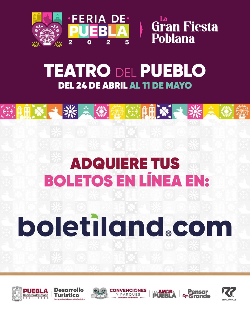 Ante ello, indicó que la venta oficial de boletos para todos los eventos se realizará exclusivamente a través de los puntos de venta y sitios web autorizados: https://www.boletiland.com y https://boletiworld.com.
