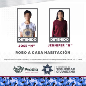 Durante la implementación del despliegue territorial, sobre calles de la colonia San Pedro de las Flores, elementos municipales detuvieron a Jennifer “N”, de 28 años de edad, y a José “N”, de 27 años de edad, señalados como presuntos responsables de entrar a robar a un domicilio.