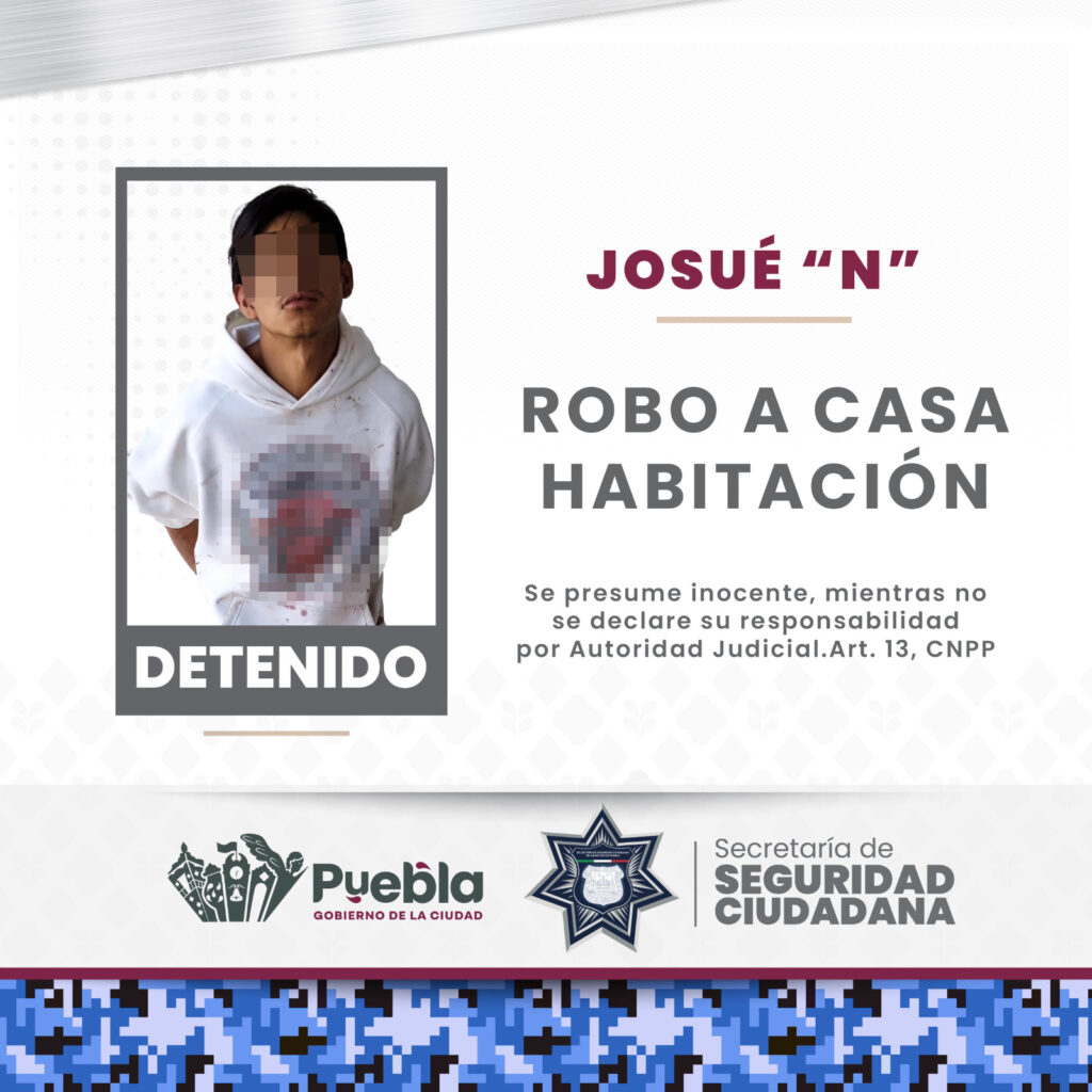 En una segunda reacción, uniformados de la SSC, aseguraron a Josué “N”, de 23 años de edad, en inmediaciones de la colonia Nueva Aurora, señalado de haber ingresado a una vivienda.