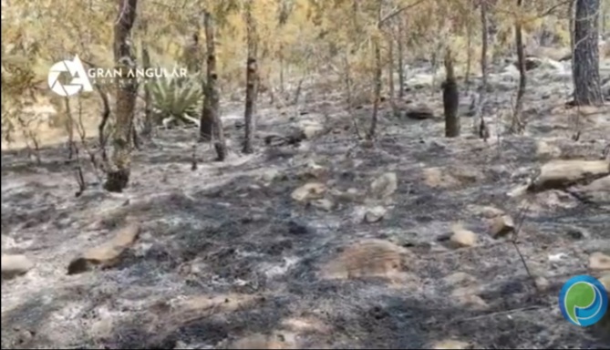 Así se encuentra una parte del cerro San Gabriel, devastado por el fuego, en Altzayanca, Tlaxcala.