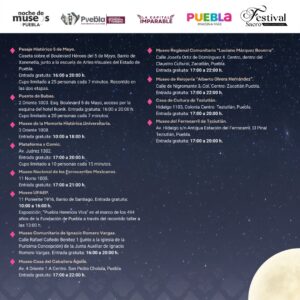 Este sábado 19 de abril se celebrará la Tercera Noche de Museos 2025 con la participación de 26 recintos culturales ubicados en la capital y municipios como San Pedro Cholula, Teziutlán y Zacatlán. La edición de este año suma como novedad a Plataforma x Comic, un espacio enfocado en el diseño y la innovación, donde 30 diseñadores locales y estudiantes de cinco universidades compartirán su trabajo con las y los visitantes.