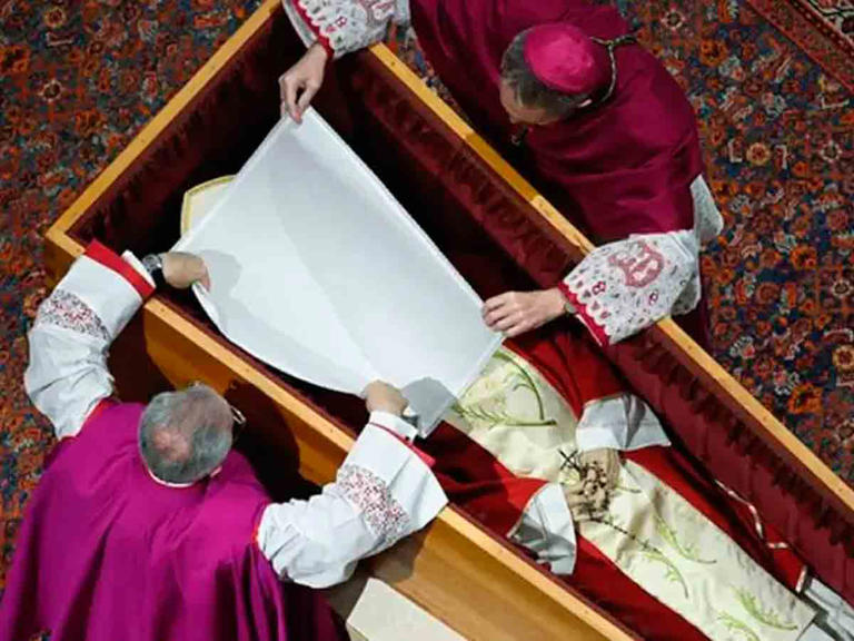 Tras el embalsamamiento, el cuerpo es vestido con túnicas rojas y una mitra blanca. Luego se traslada a la Basílica de San Pedro, donde permanecerá en capilla ardiente durante tres días. Antiguamente, el cuerpo se colocaba sobre un catafalco (una especie de plataforma elevada), pero Francisco pidió algo diferente: su ataúd, abierto, será el centro de la ceremonia.
