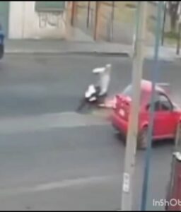 En las imágenes grabadas mediante una cámara de seguridad se logra apreciar cómo el joven del caballo de acero parece que quería dar vuelta a mano izquierda; sin embargo, en una mala maniobra derrapó y pegó su cara contra el pavimento.