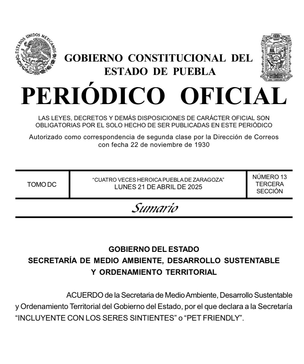 Es oficial: Puebla cuenta con su primera secretaría Pet Friendly o también denominada secretaría incluyente con los seres sintientes.