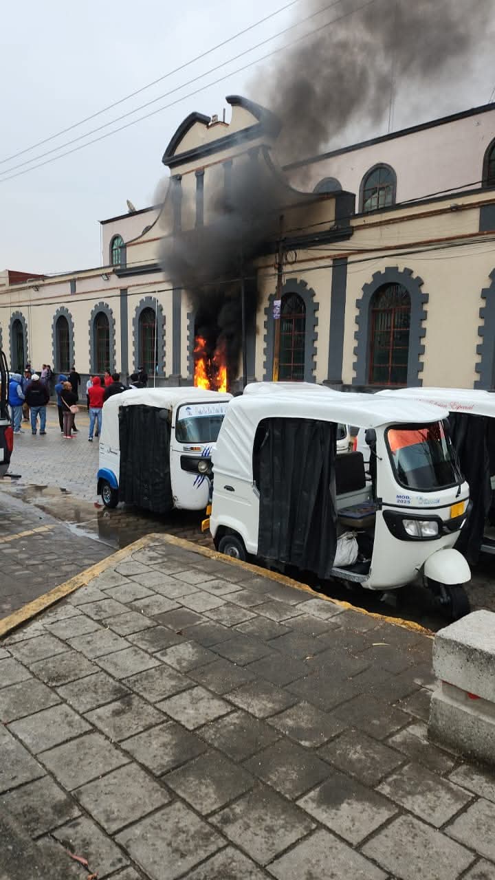 Un grupo de pobladores le prendió fuego a la entrada de la presidencia de Acatzingo, luego de la detención de presuntos asaltantes de mototaxistas llevados a la comandancia.