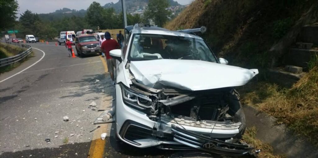 Aparentemente, una vuelta clandestina provocó choque entre dos autos compactos en el kilómetro 124+400 de la carretera de cuota México-Tuxpan, en la zona de la desviación, Acaxochitlán, límites de Hidalgo y Puebla.