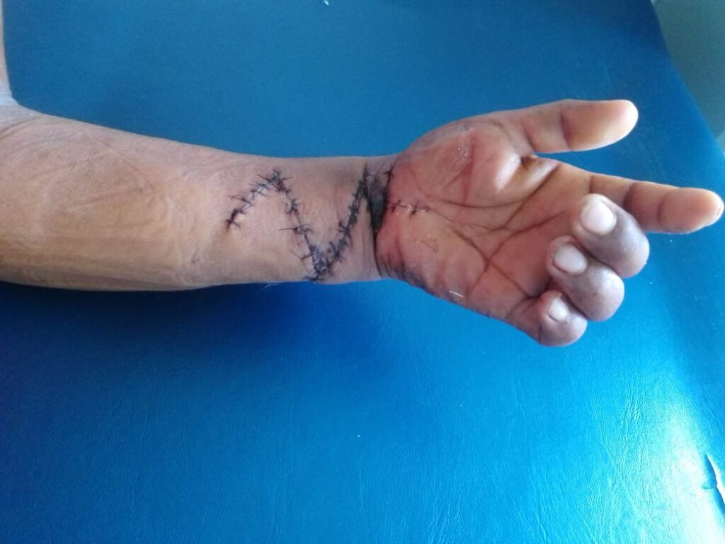 Tras sufrir varios machetazos, en las manos, cara, cabeza, perdiera un dedo y le dejaran las manos casi inservibles por la gravedad de las lesiones que sufrió hace más de tres años, la aplicación de la ley para el no existe.