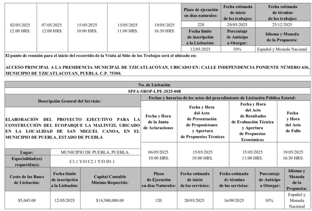 El gobierno de Puebla emitió una licitación pública nacional, para contratar a una empresa que se encargue de construir el Ecoparque La Malintzi.