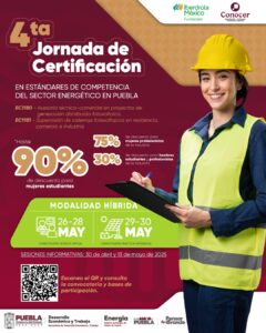 CIUDAD DE PUEBLA, Pue. – En el marco de las estrategias para consolidar una transición energética justa e incluyente, el Gobierno de Puebla impulsa la profesionalización del talento local mediante la 4ª Jornada de Certificación en Estándares de Competencia del Sector Energético. Esta convocatoria, emitida por la Agencia de Energía del Estado de Puebla, y en conjunto con Fundación Iberdrola México, busca ampliar las oportunidades de formación técnica especializada en energías limpias.