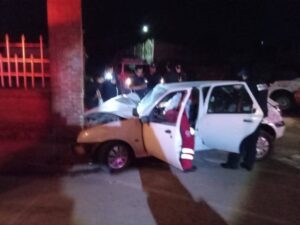 Dos masculinos resultaron lesionados luego de chocar su automóvil contra un castillo en Eloxochitlán.