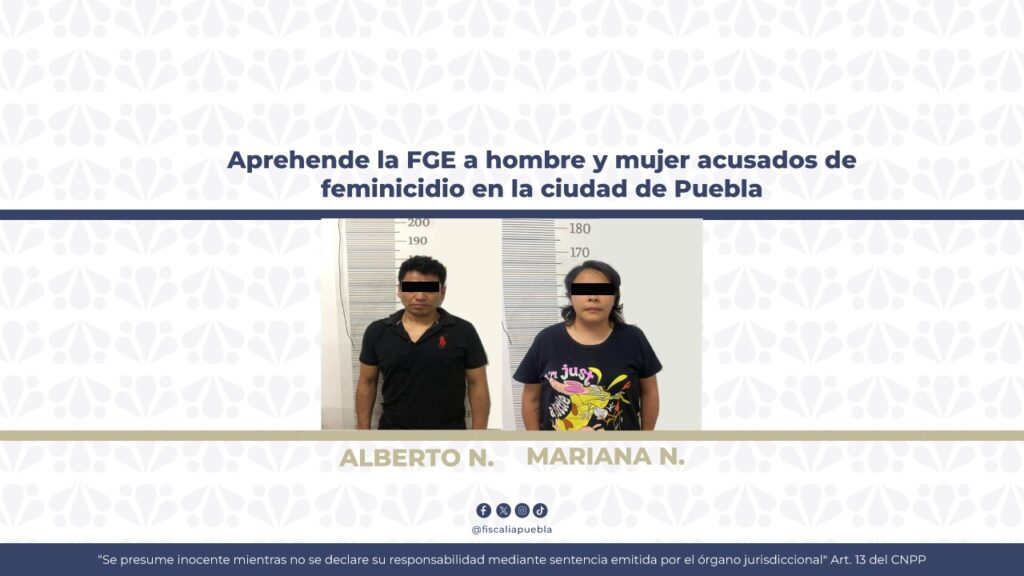 Por su probable participación en el feminicidio de una persona de la tercera edad de nombre María Antonia N., ocurrido en la colonia Tepeyac de la ciudad de Puebla, la Fiscalía General del Estado dio cumplimiento a dos órdenes de aprehensión en contra de Alberto Huerta N., y de Mariana Rosete N, sobrino e hija de la víctima, respectivamente.