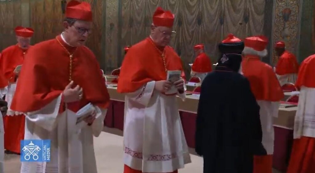 Posteriormente, comenzó el Cónclave 2025, donde los 133 cardenales que tendrán la tarea de elegir al sucesor del papa Francisco fueron ingresando a la Capilla Sixtina, a la par de cantar la “Letanía de los Santos”