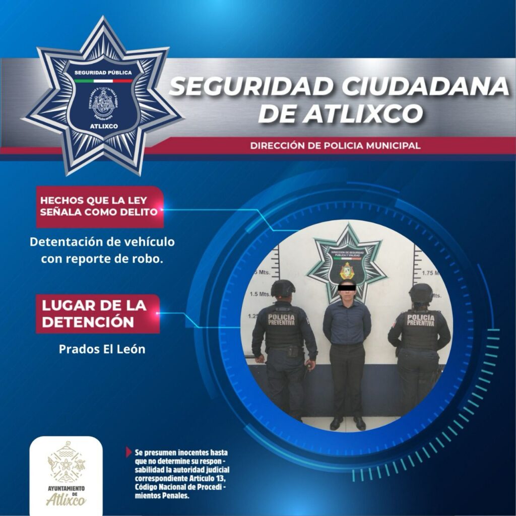 Gracias al sistema de cámaras lectoras de placas, elementos de la Secretaría de Seguridad Ciudadana (SSC) de Atlixco lograron la localización y recuperación de un vehículo con reporte de robo.