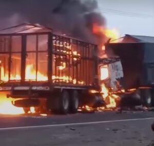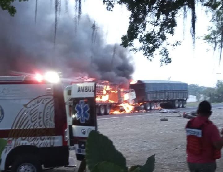 La carretera federal 130 Pachuca-Tuxpan permanece cerrada, luego de fuerte accidente entre pipa y camión, que provocó un incendio que consumió ambas unidades en Venustiano Carranza, Puebla.