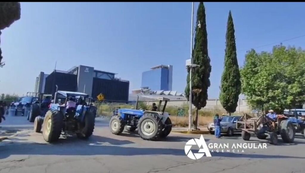 Con tractocamiones arribaron los campesinos a la periferia del SAT, mientras otros a pie acompañaron la manifestación.