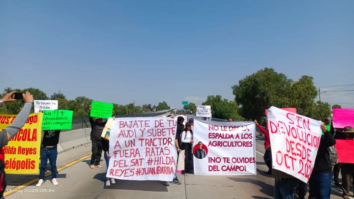 Productores agrícolas tapan la autopista Puebla- Orizaba a la altura de Acatzingo en ambos sentidos