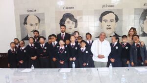 Amozoc de Mota, Puebla a 14 de mayo del 2025.- Como acción para fortalecer la formación cívica y ciudadana desde edades tempranas, alumnos del Centro Escolar Enrique Sánchez Paredes realizaron una visita educativa a la emblemática Casa Colorada, donde fueron cordialmente recibidos por el Presidente Municipal, Severiano de la Rosa Romero, así como por regidoras y regidores del Ayuntamiento.