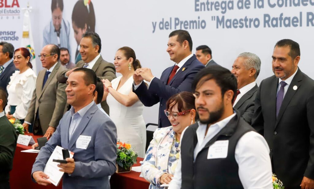 CIUDAD DE PUEBLA, Pue.- Con la reconstrucción del CAPCEE se apoyará más a las escuelas, con la auditoría del ISSSTEP se atenderá con dignidad a los maestros y con el Programa de Obra Comunitaria se apoyará con paneles solares a las instituciones educativas, afirmó el gobernador Alejandro Armenta, al entregar la Condecoración “Maestro Manuel Altamirano por 30 años de servicio y el premio “Maestro Rafael Ramírez”, por 40 años de trabajo a profesores del estado.