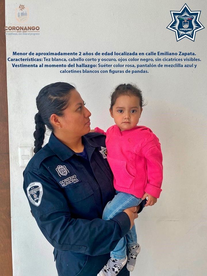 Elementos de la Secretaría de Seguridad Pública (SSP) localizaron a una menor de aproximadamente dos años de edad en aparente estado de abandono.