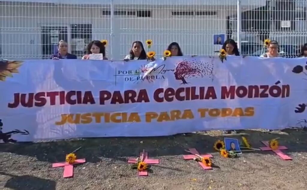 Este 21 de mayo, el colectivo “Por las Mujeres de Puebla” colocó flores amarillas, cartulinas, mantas y cruces moradas en el penal de San Miguel en Puebla.