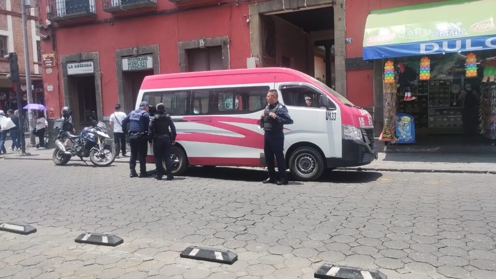 Murió hombre de aparente infarto en combi de transporte público en pleno Centro Histórico de Puebla capital.