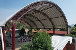 La intervención consistió en la instalación de un techado de 659.97 metros cuadrados, así como la colocación de un canalón y bajadas pluviales que garantizan el adecuado desalojo del agua durante la temporada de lluvias.