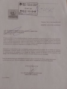 Como parte de su posicionamiento, la organización civil ha solicitado audiencias con Cutberto Benito Cano Cóyotl, director del Centro SITC-Tlaxcala, y Marco Tulio Munive Temoltzin, titular de la SMT, con el fin de discutir los alcances legales y administrativos de esta medida.