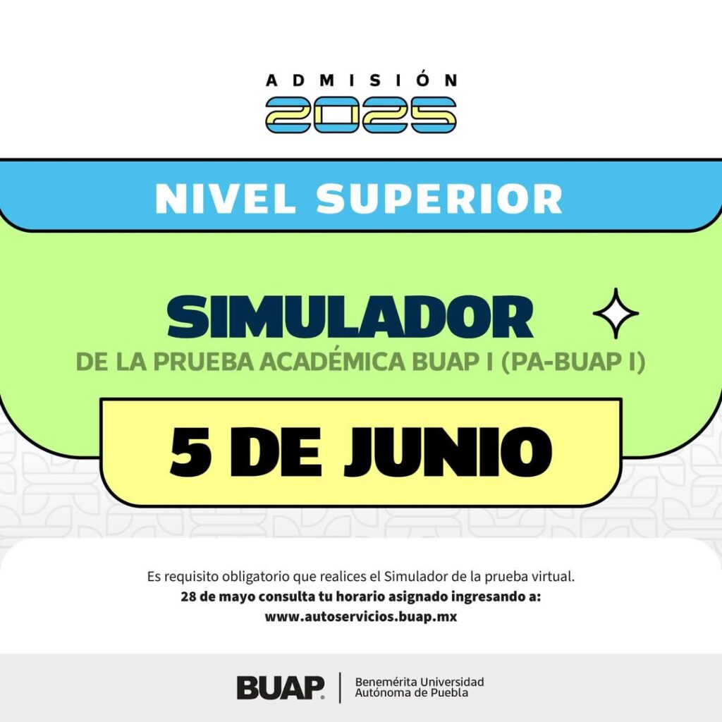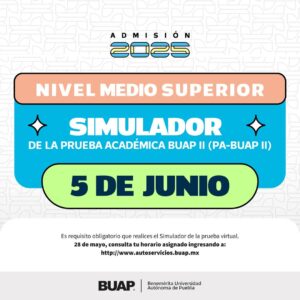 El requisito obligatorio para que los jóvenes realicen el simulador de la prueba virtual para ambos niveles es, que el 28 de mayo consulten el horario asignado ingresando a la página http://www.autoservicios.buap.mx.