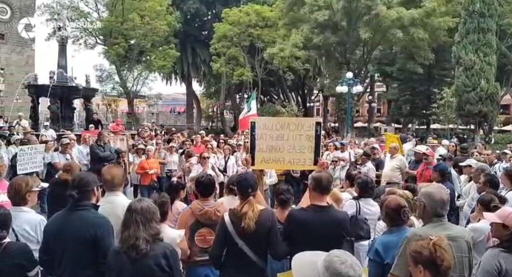 Al igual que en la Ciudad de México y otras partes del país, en Puebla decenas de personas se manifestaron contra las elecciones de jueces y magistrados del Poder Judicial.