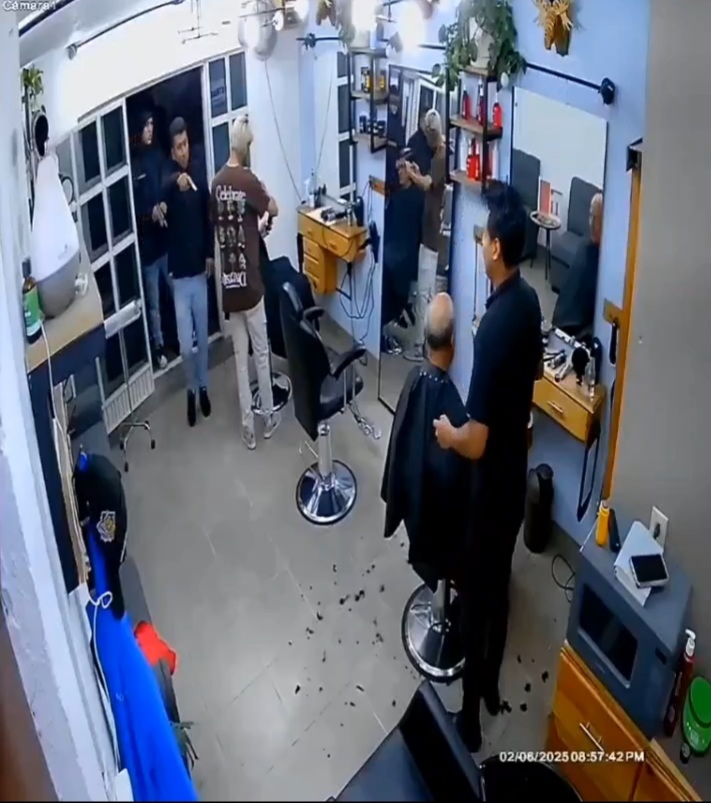 Tres sujetos armados tomaron por asalto una barbería y robaron camioneta HS dw MG blanca, placas TRE097B en San Pedro Cholula.