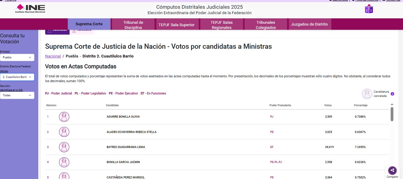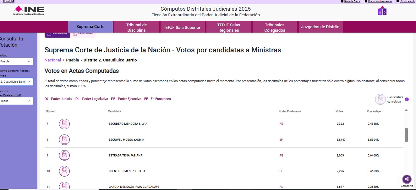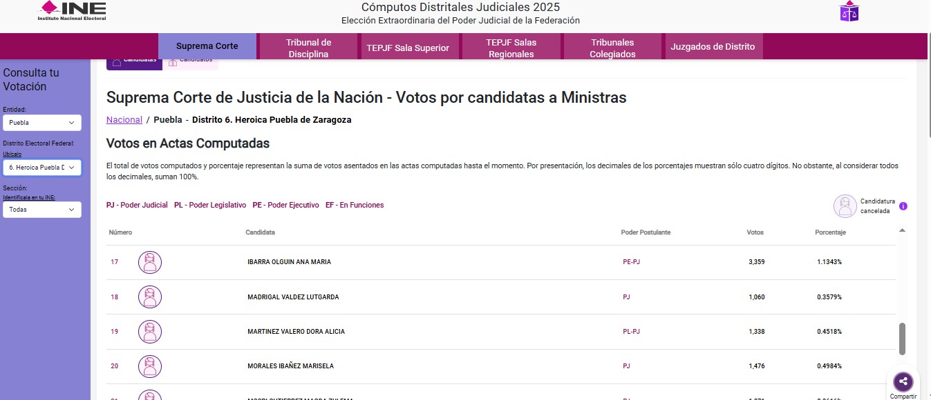 Los números no mienten: De acuerdo a los cómputos distritales del INE, los ganadores de la contienda por la SCJN, Hugo Aguilar Ortiz y Lenia Batres Guadarrama obtuvieron alrededor de 615 mil votos en Puebla, lo que implica que los morenistas poblanos dieron a SUS CANDIDATOS más del 10 por ciento del total nacional de sufragios del domingo.