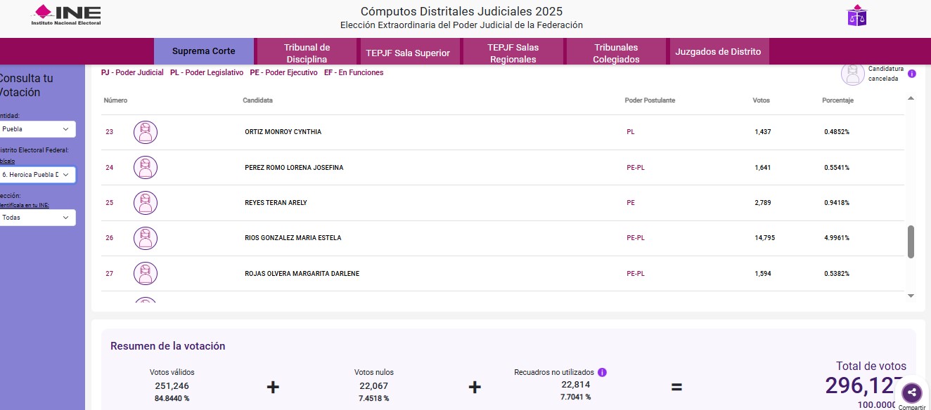 Pero en Puebla capital, la zona de Cholula y Ciudad Serdán el panorama es muy diferente. Para empezar, el distrito electoral 6 de la Angelópolis fue el menos participativo de la entidad, después de que apenas dio poco más de 17 mil votos a Hugo Aguilar y/o Lenia Batres: Hugo Aguilar Ortiz y Lenia Batres aventajan en elección a la Suprema Corte