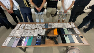 Tras el despliegue territorial y la persecución ininterrumpida, los uniformados de la Policía de la Ciudad y la del Estado, interceptaron y detuvieron a Brian “N”, Gabriel “N”, Omar “N”, Zachiel “N” e Irving “N”, quienes tenían en su poder aproximadamente medio centenar de equipos celulares, algunos envueltos en papel aluminio, dos motocicletas, un casco, y dos objetos con características similares a las de las armas de fuego.