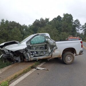 Elementos de bomberos y Protección Civil del municipio de Huauchinango, apoyan en el rescate de un conductor de la CFE, que terminó impactado contra la barra de contención del Puente de Totolapa en la localidad de Venta Grande.