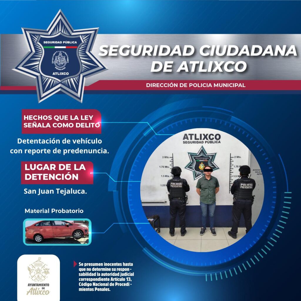 Con estas acciones, el gobierno municipal de Atlixco refrenda su compromiso con la seguridad, el orden y la protección del patrimonio de las familias atlixquenses.