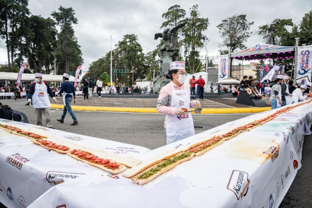 Victoria Sánchez, Directora General de Educación, Cultura y Turismo, destacó que la elaboración del chorizo fue realizada por seis maestras y maestros del municipio; además, detalló que la realización de la torta fue por más de 60 servidores públicos que pusieron 20 kilos de frijoles, 42 de aguacate, 46 de jito-mate, 20 de chiles, 60 litros de crema y pan artesanal de 82 metros, para que los asistentes se deleitaran con el sabor toluqueño.