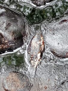 Hoy por la mañana en el lugar se ve fauna muerta por intoxicación, además de que la contaminación en el cuerpo de agua es evidente, por lo que se espera que PEMEX tome cartas en el asunto en cuanto a mantenimiento de las tuberías y sobre todo en la reparación del daño.