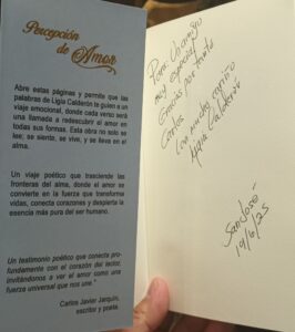 Percepción de amor (H.C EDITORES, Costa Rica, 2025) es un libro donde la poeta Ligia Calderón cristalizó sus sentimientos más profundos… extraídos de su alma. Los expresa de manera exitosa desde su perspectiva, desde lo percibido a lo largo de su vida. Los mensajes que transmite Ligia, a través de sus poesías y canciones, están teñidas de colores de esperanza, amor, amistad, motivación, espiritualidad y paz.