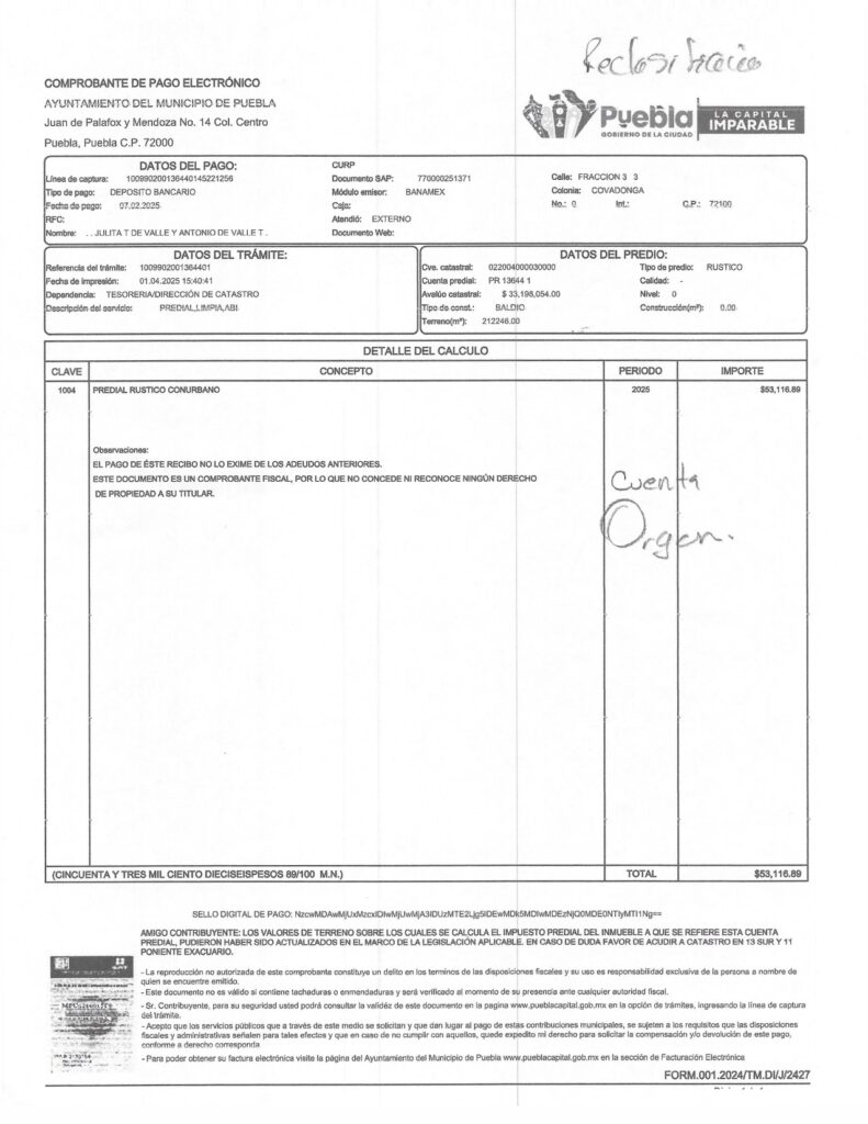 El apoderado legal de la Fundación Julita y Antonio recordó que los terrenos invadidos fueron donados por La Covadonga a esta institución, para su labor social, como lo demuestran todos los papeles, incluyendo boletas de predial de Puebla capital, gravamen pagado por los representantes de la organización, incluyendo este año.